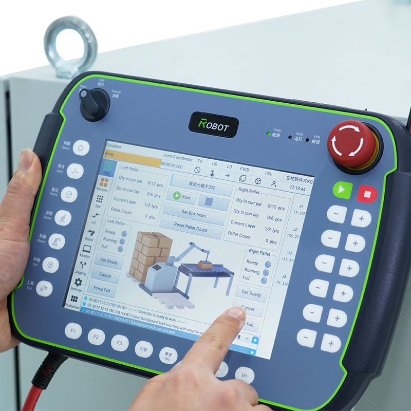 Code-Free Visual Operation: Features an HD industrial touchscreen allowing regular operators to switch palletizing recipes with a single tap.
